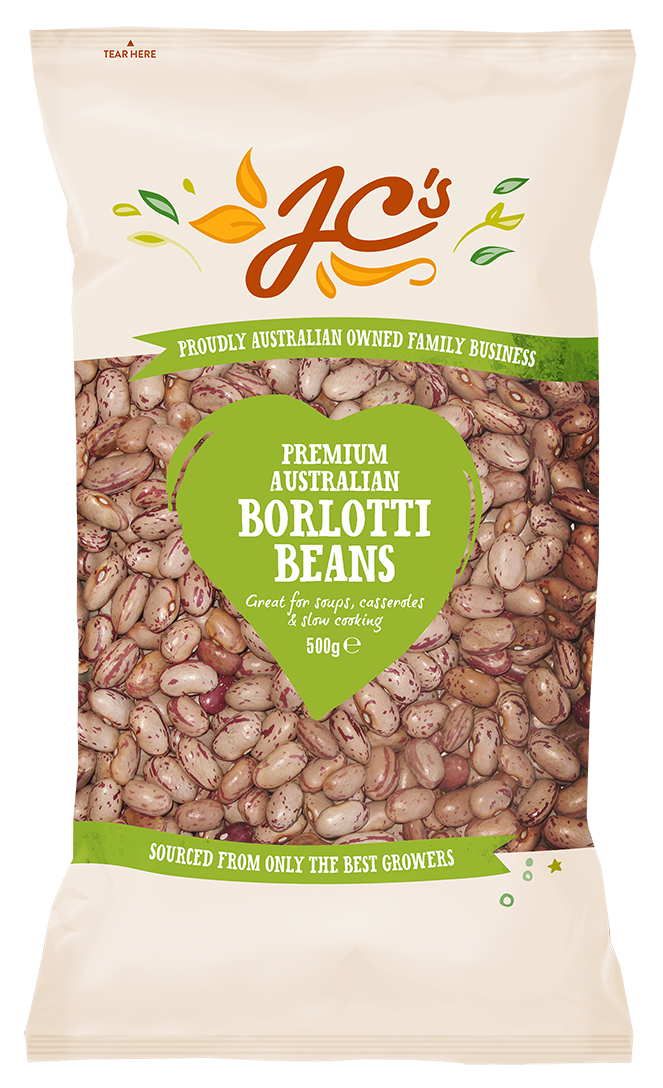 There should always be a pack of our Premium Borlotti Beans sitting in your pantry. These red streaked hazelnut-coloured beans look amazing on plate and offer plenty of versatility to home cooks all across the country. Borlotti beans are great for soups salads and slow cooking. They can also be used as a hearty bedding for meat and seafood. Don't forget to blitz up a beany dip for sandwich fillings baked potatoes and snacking too!